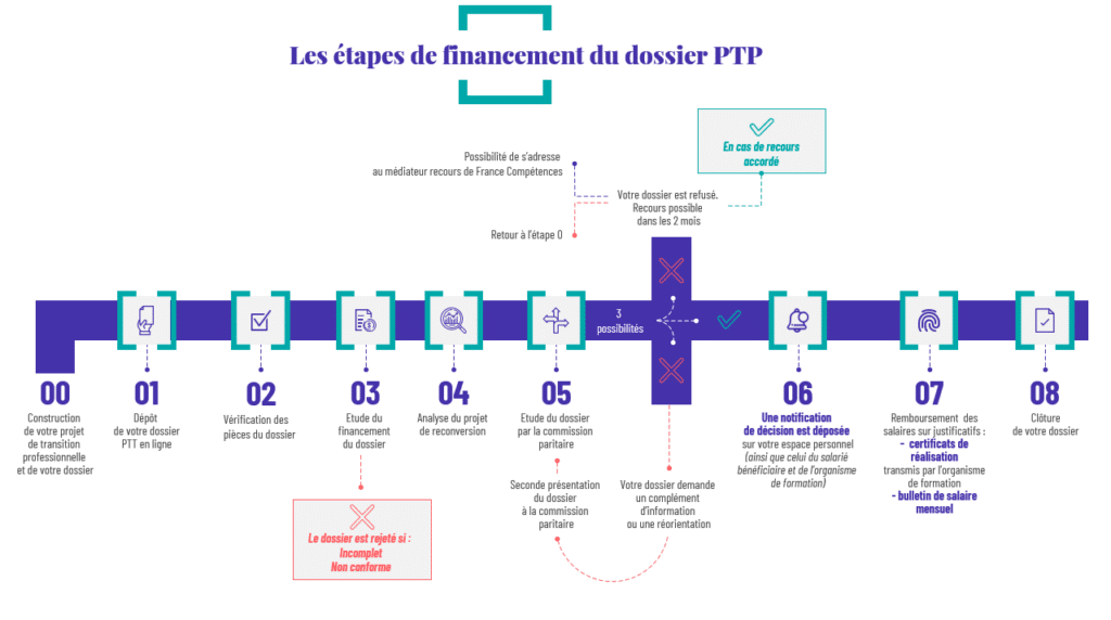 Avant toute démarche, nous vous recommandons de contacter Transitions Pro afin d’identifier les motifs du refus. Cela vous aidera à ajuster votre projet ou à préparer un recours solide.